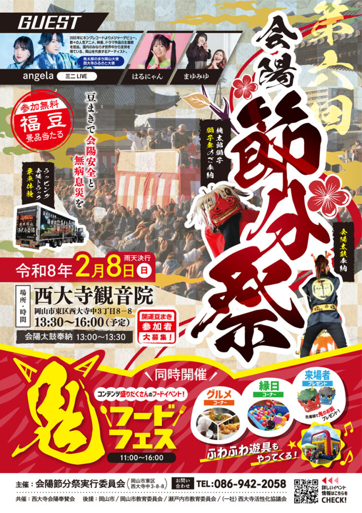 2026年2月8日(日)に、岡山県西大寺で行われる第6回会陽節分祭に、angelaの出演が決定いたしました。