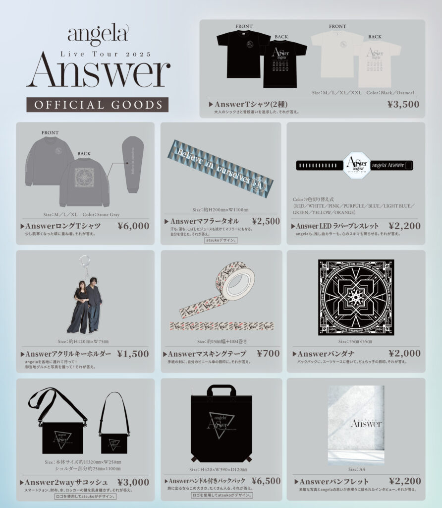 『angela Live Tour 2025「Answer」』グッズの事後通信販売、詳細が決定いたしました!